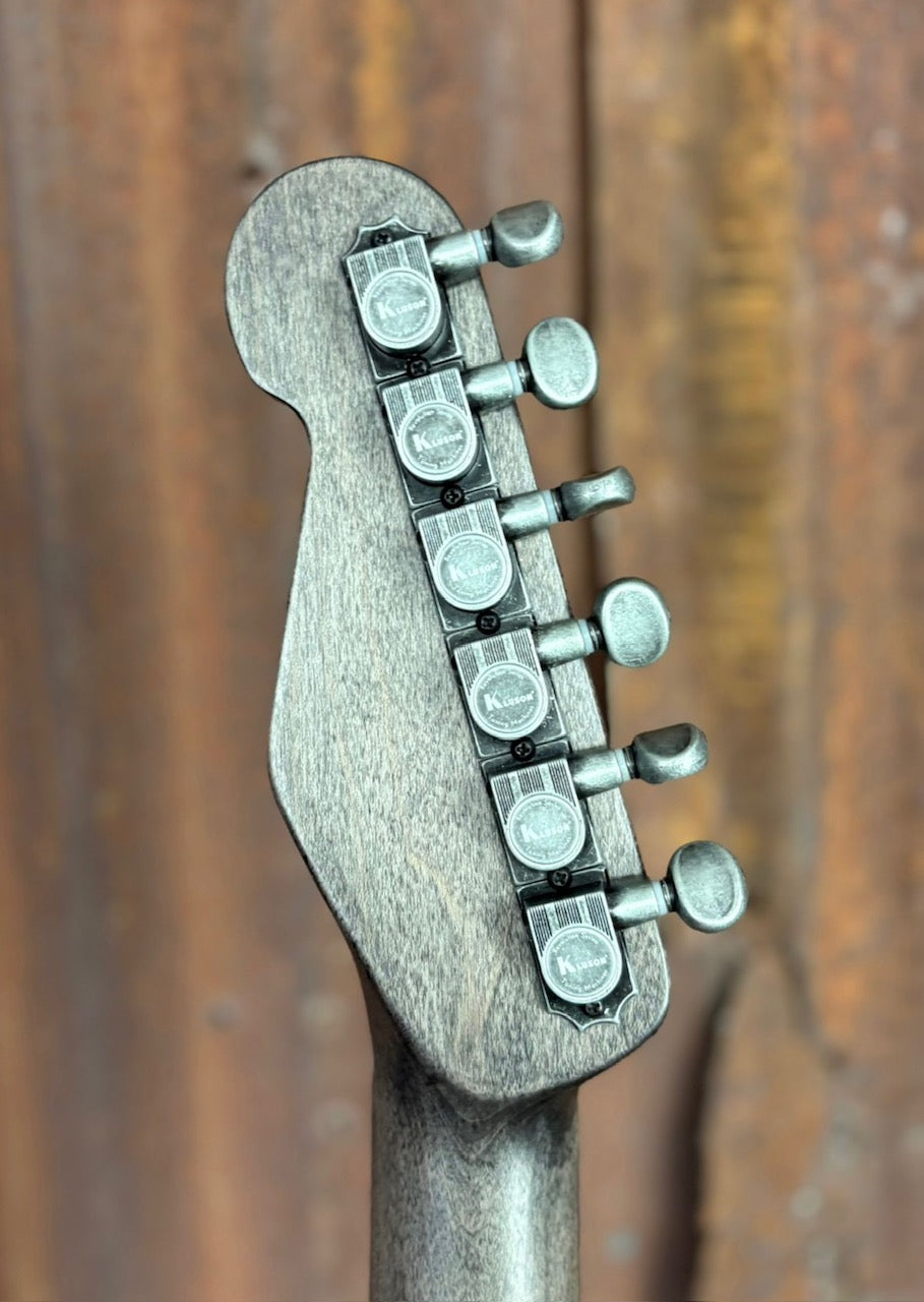 • Arcane HSS hand wound pick ups with Antique Silver covers
